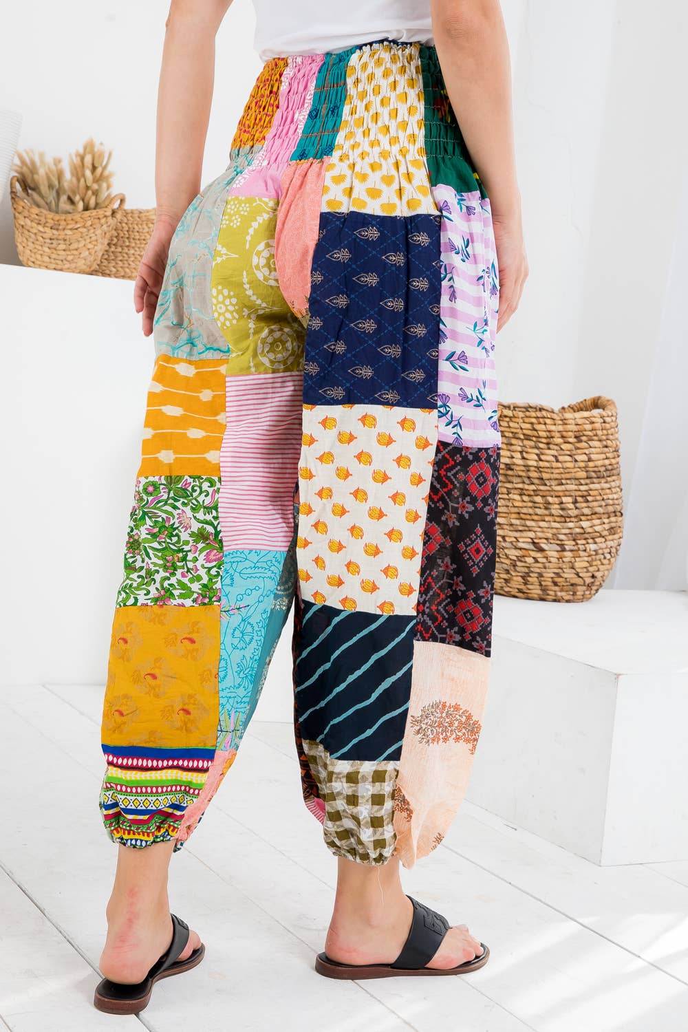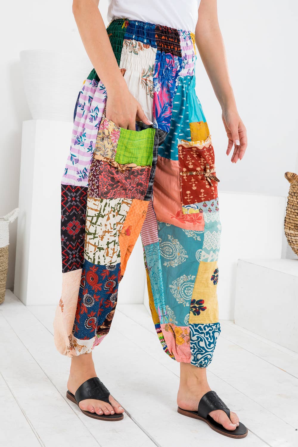 The Patchworks Smoked Pants from Kathmandu Imports are a casual yet stylish addition to your loungewear collection. Made from 100% cotton, these pants offer a comfortable missy fit, perfect for the Spring/Summer season. They feature a unique patchwork design and two handy front pockets. Care for them is simple, just pop them in the machine for a wash.