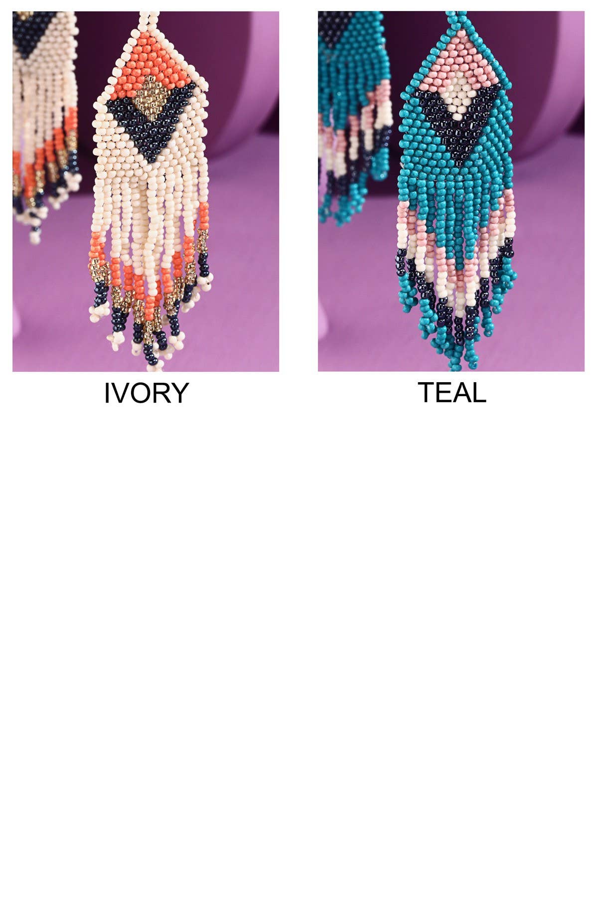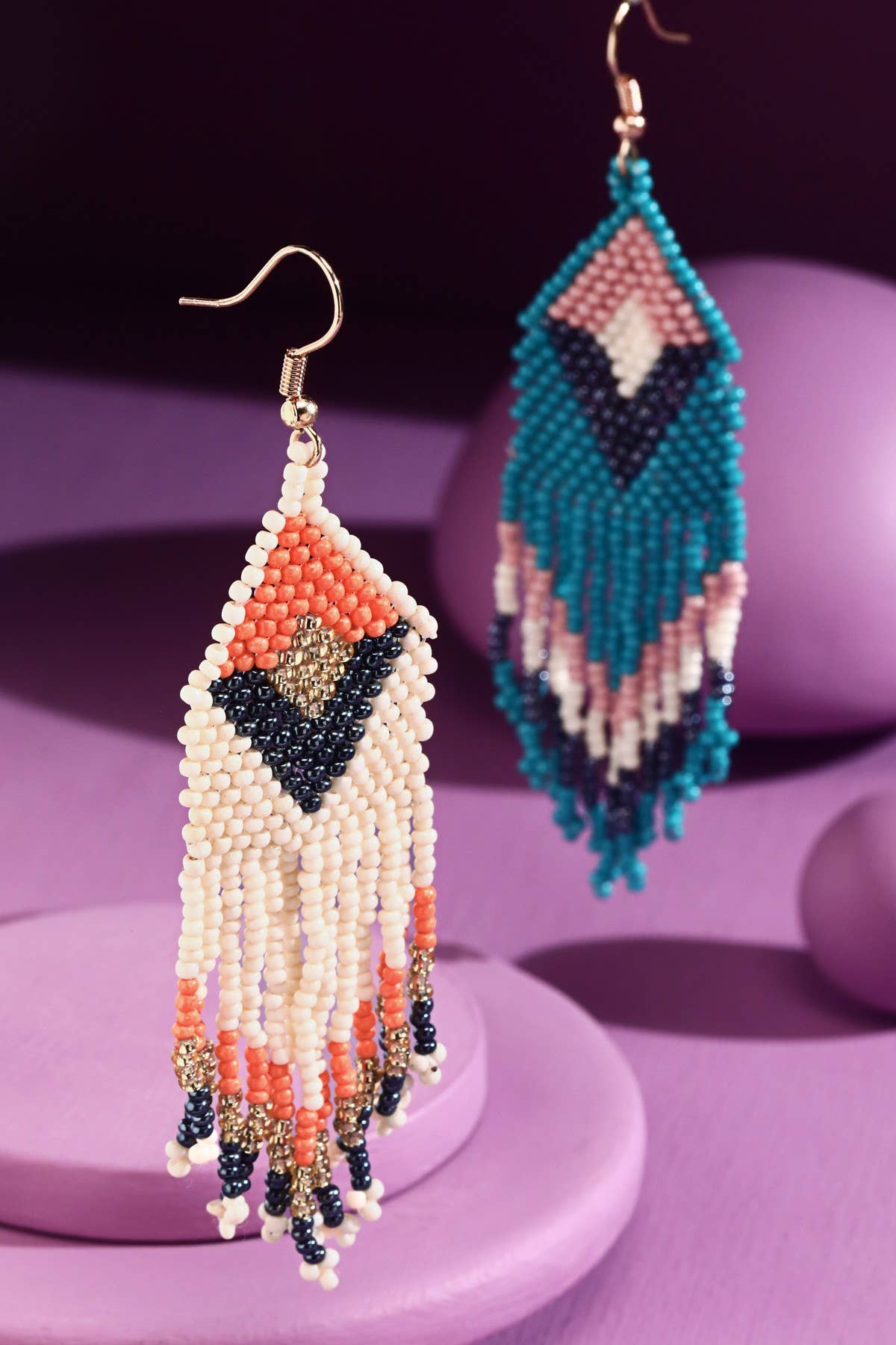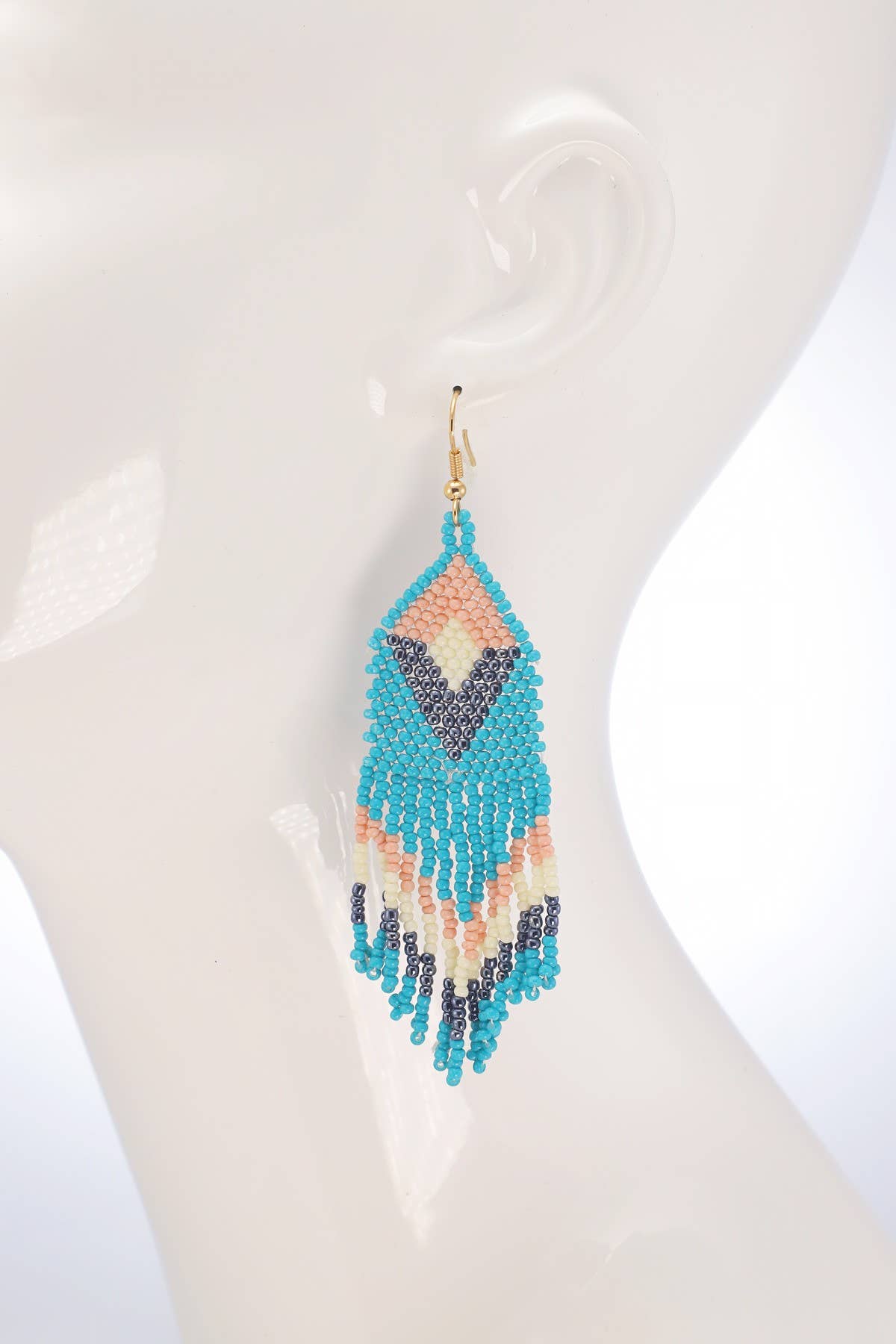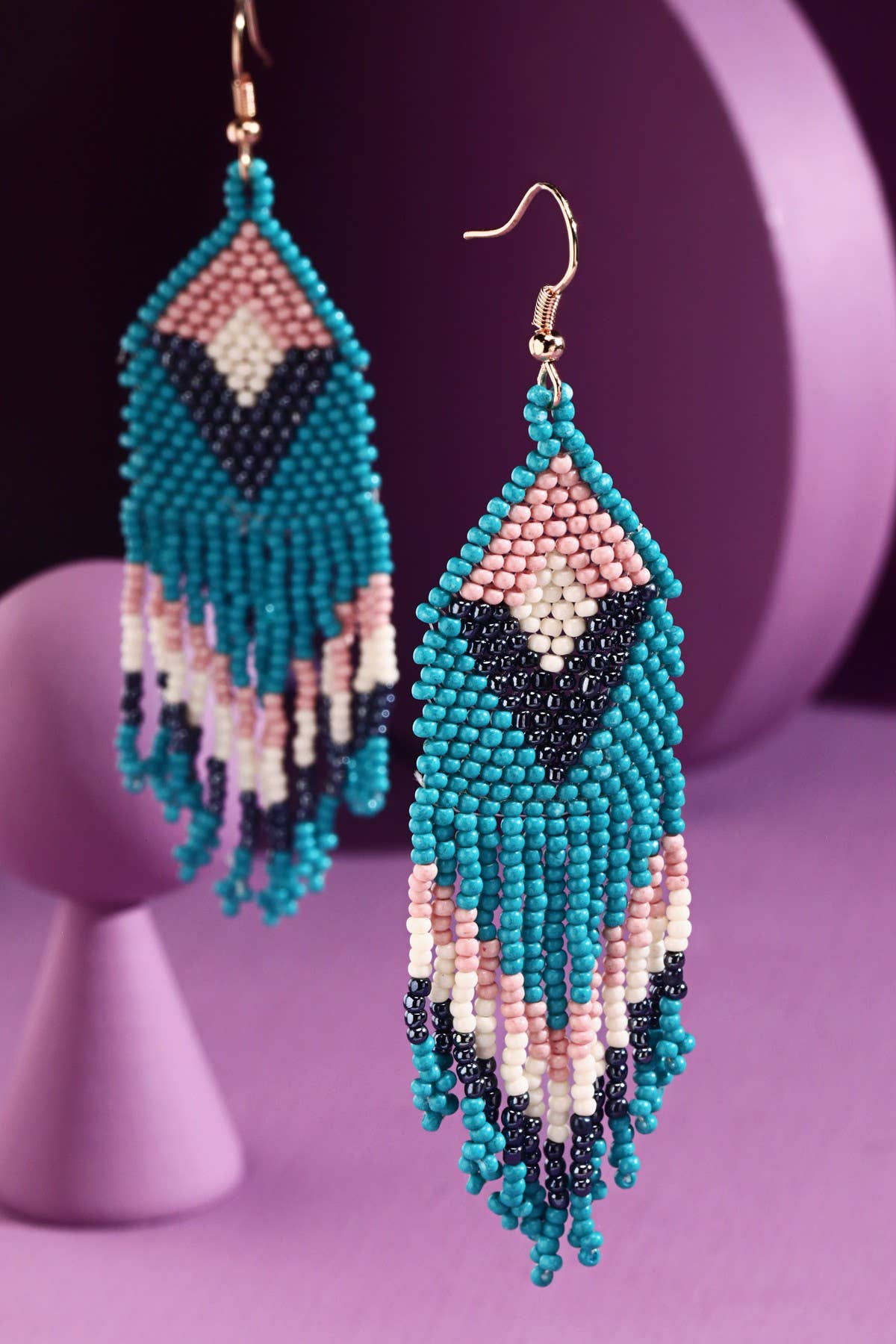 Gorgeous seed bead chevron wide fringe tassels drop earring